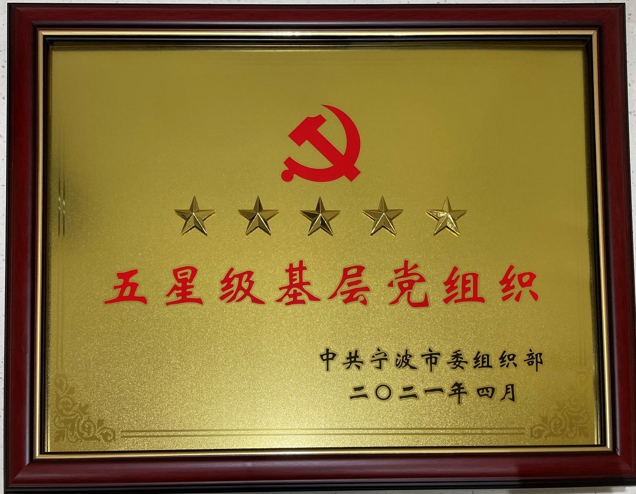 我公司黨委被中共寧波市委組織部評為“五星級基層黨組織”!